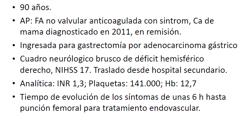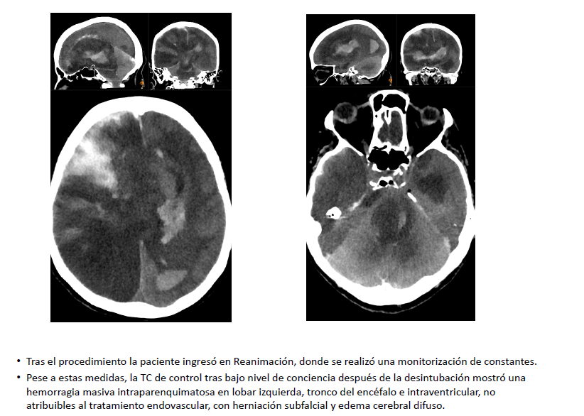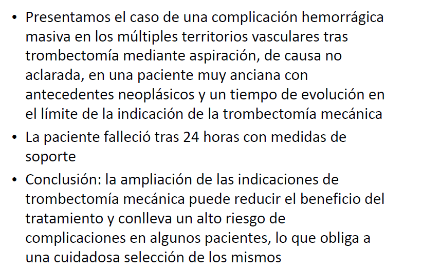 Complicación hemorrágica masiva tras trombectomía mecánica con aspiración en paciente añosa con antecedente neoplásico