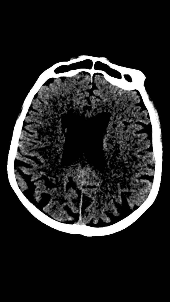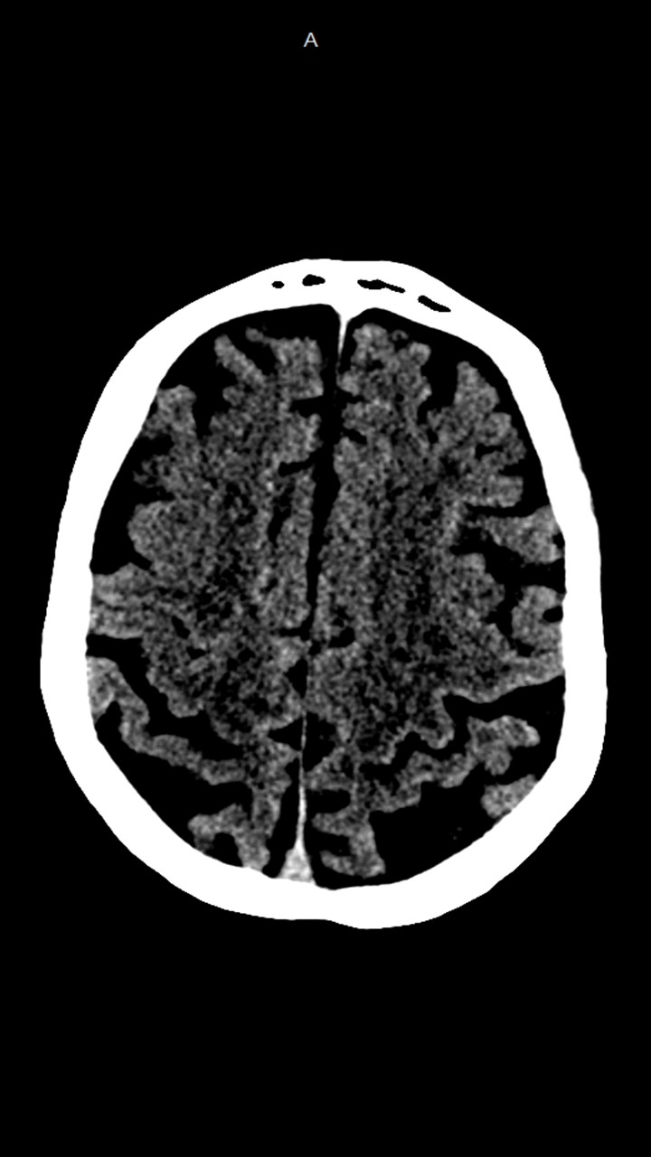 • Hay zonas de hipodensidad subcortical fronto-parietal superior predominantemente izquierdas, de aspecto inespecíficos.