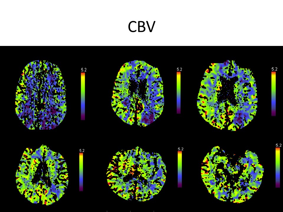 Los mapas de volumen presentan algunas zonas parcheadas de menor perfusión.
